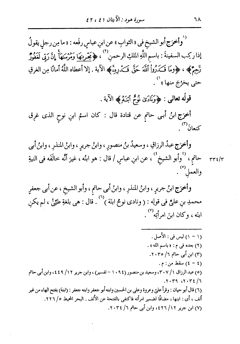 وأخرج عبد الرزاق وسعيد بن منصور ، وَابن جَرِير ، وَابن المنذر ، وَابن أبي حاتم عن ابن عباس رضي الله عنهما قال : هو ابنه غير أنه خالفه في النية والعمل ، ، وَابن جَرِير ، وَابن المنذر ، وَابن أبي حاتم وأبو الشيخ عن أبي جعفر محمد بن علي رضي الله عنه في قوله {ونادى نوح ابنه} قال : هي بلغة طيئ لم يكن ابنه وكان ابن امرأته