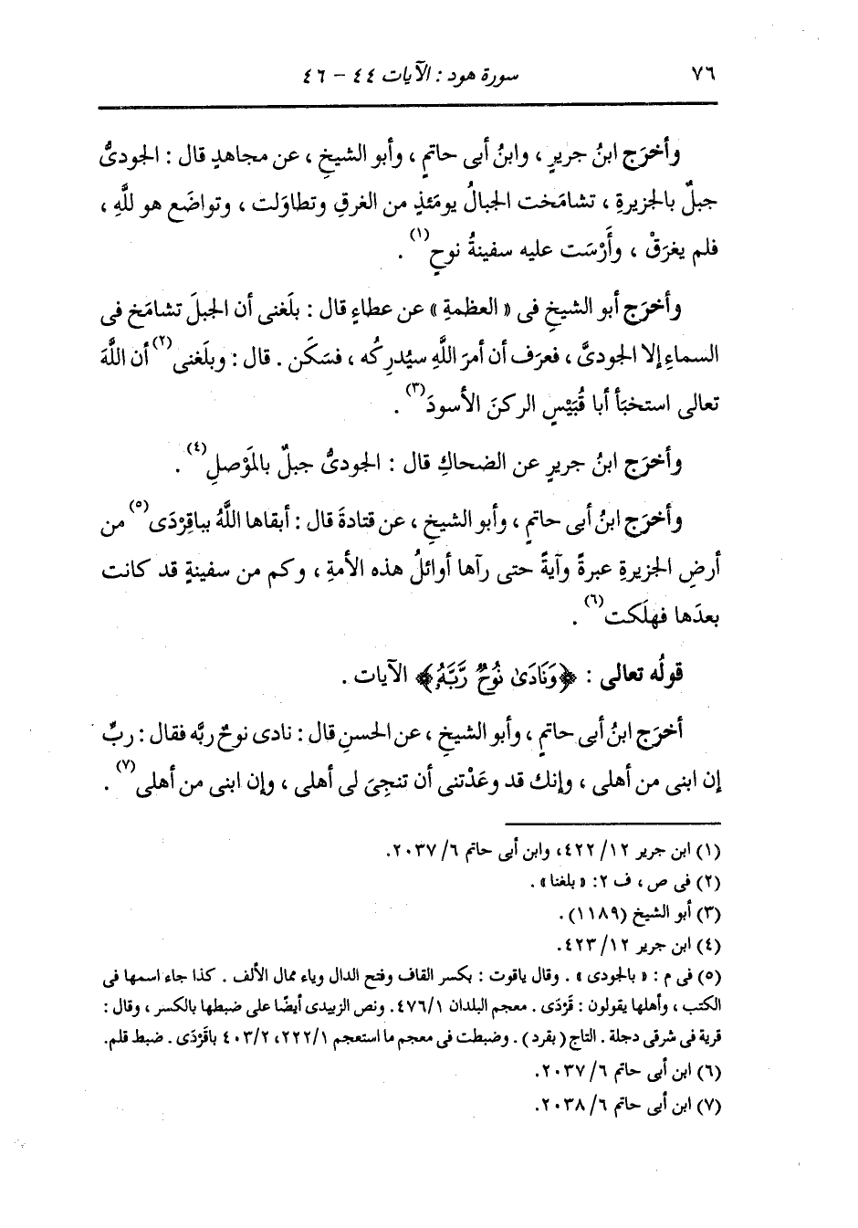 وأخرج ابن جرير عن الضحاك رضي الله عنه قال : الجودي جبل بالموصل.