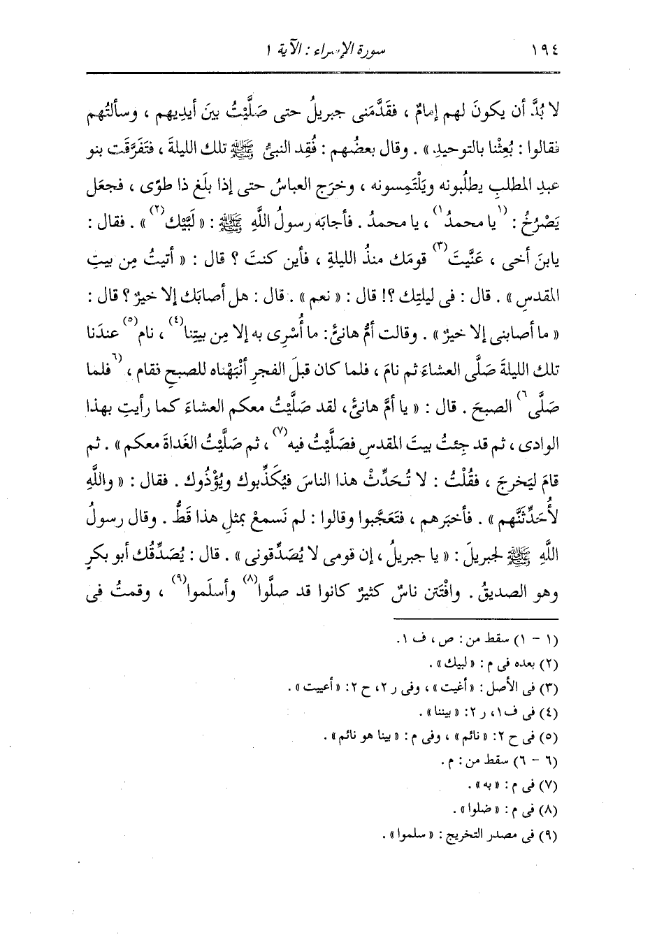 إمام فقدمني جبريل عليه السلام حتى صليت بين أيديهم وسألتهم فقالوا : بعثنا بالتوحيد ، وقال بعضهم : فقد النَّبِيّ صلى الله عليه وسلم تلك الليلة فتفرقت بنو عبد المطلب يطلبونه يلتمسونه وخرج العباس رضي الله عنه حتى إذا بلغ ذا طوى فجعل يصرخ يا محمد يا محمد فأجابه رسول الله صلى الله عليه وسلم لبيك لبيك فقال : ابن أخي أعييت قومك منذ الليلة فأين كنت قال : أتيت من بيت المقدس قال : في ليلتك قال : نعم ، قال : هل أصابك إلا خير قال : ما أصابني إلا خير ، وقالت أم هانئ رضي الله عنها : ما أسري به إلا من بيتنا بينا هو نائم عندنا تلك الليلة صلى العشاء ثم نام فلما كان قبل الفجر أنبهناه للصبح فقام فصلى الصبح ، قال : يا أم هانئ لقد صليت معكم العشاء كما رأيت بهذا الوادي ثم قد جئت بيت المقدس فصليت به ثم صليت الغداة معكم ثم قام ليخرج فقت لا تحدث هذا الناس فيكذبوك ويؤذوك ، فقال : والله لأحدثنهم فأخبرهم فتعجبوا وقالوا لم نسمع بمثل هذا قط ، وقال رسول الله صلى الله عليه وسلم لجبريل عليه السلام : يا جبريل إن قومي لا يصدقوني قال : يصدقك أبو بكر وهو الصديق ، وافتتن ناس كثير وضلوا كانوا قد أسلموا وقمت في