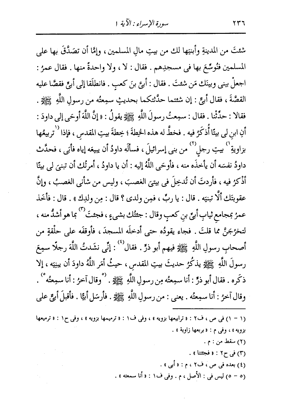 شئت من المدينة وأبنيها لك من بيت مال المسلمين وإما أن تصدق بها على المسلمين فيوسع بها في مسجدهم ، فقال : لا ولا واحدة منها ، فقال عمر رضي الله عنه : اجعل بيني وبينك من شئت ، فقال أبي بن كعب رضي الله عنه فانطلقا إلى أبي فقصا عليه القصة ، فقال أبي رضي الله عنه : إن شئتما حدثتكما بحديث سمعته من رسول الله صلى الله عليه وسلم ، فقالا : حدثنا ، فقال : سمعت رسول الله صلى الله عليه وسلم يقول : إن الله أوحى إلى داود ابن لي بيتا أذكر فيه فخط له هذه