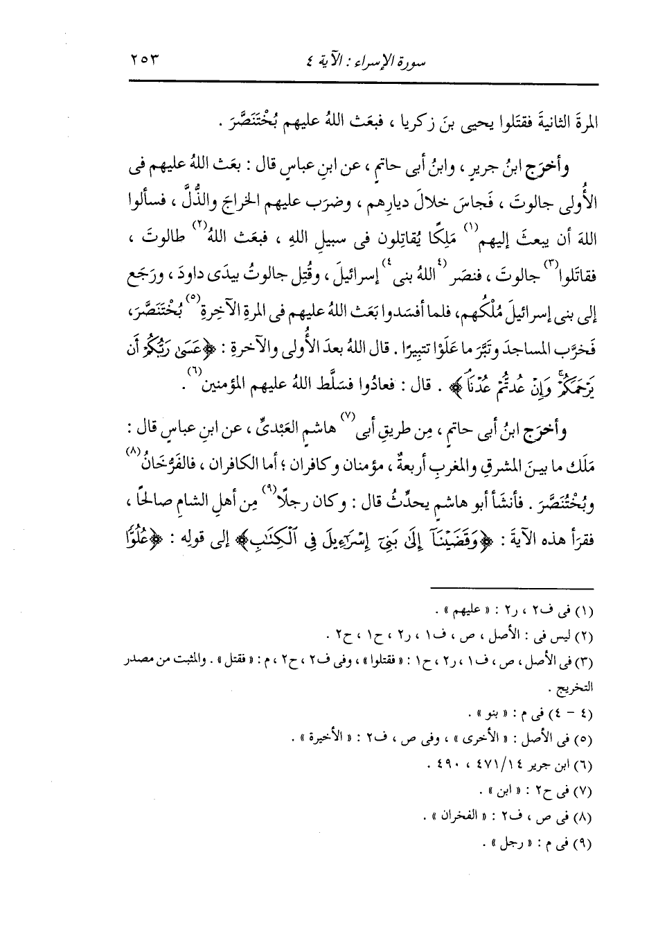 وأخرج ابن أبي حاتم من طريق أبي هاشم العبدي عن ابن عباس رضي الله عنهما قال : ملك ما بين المشرق والمغرب أربعة : مؤمنان وكافران أما الكافران فالفرخان [ و] بختنصر ، فأنشأ أبو هاشم يحدث قال : كان رجل من أهل الشام صالحا فقرأ هذه الآية {وقضينا إلى بني إسرائيل في الكتاب} إلى قوله : {علوا
