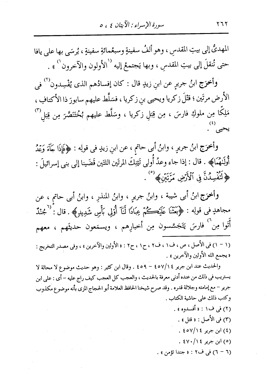 وأخرج ابن جرير ، وَابن أبي حاتم عن ابن زيد رضي الله عنه في قوله : {فإذا جاء وعد أولاهما} قال : إذا جاء وعد أولى تينك المرتين اللتين قضينا إلى بني إسرائيل {لتفسدن في الأرض مرتين}.