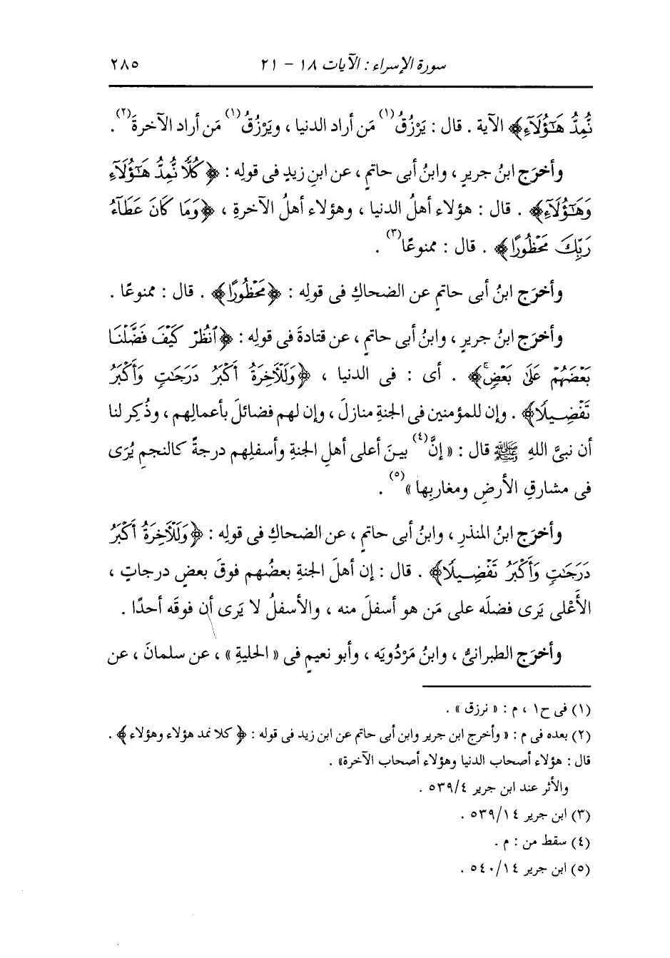 وأخرج ابن جرير ، وَابن أبي حاتم عن ابن زيد رضي الله عنه في قوله : {كلا نمد هؤلاء وهؤلاء} قال : هؤلاء أصحاب الدنيا وهؤلاء أصحاب الآخرة.