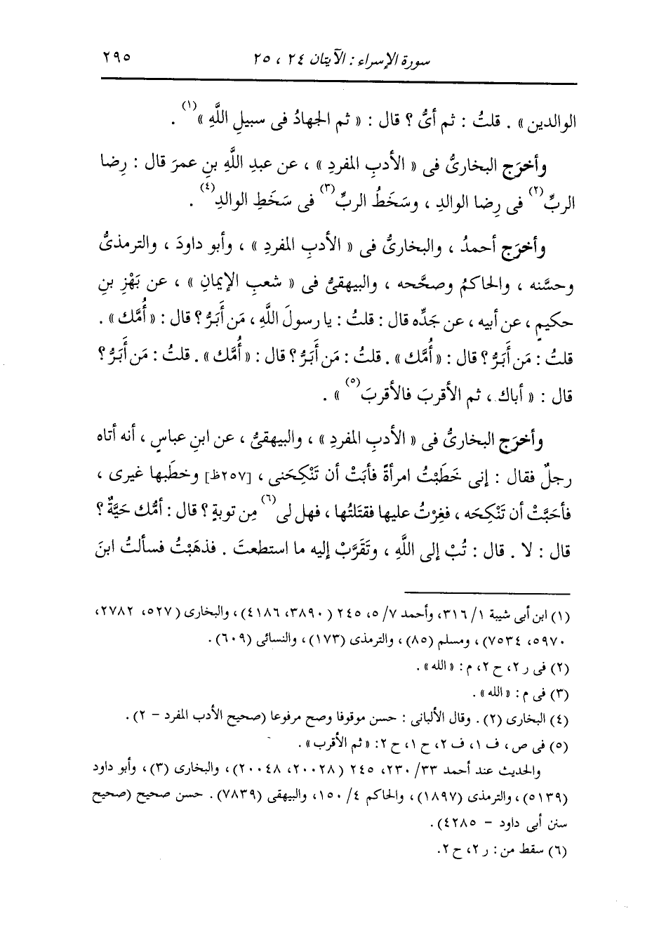 وأخرج أحمد والبخاري في الأدب المفرد وأبو داود والترمذي وحسنه والحاكم وصححه والبيهقي في شعب الإيمان عن بهز بن حكيم عن أبيه عن جده قال :