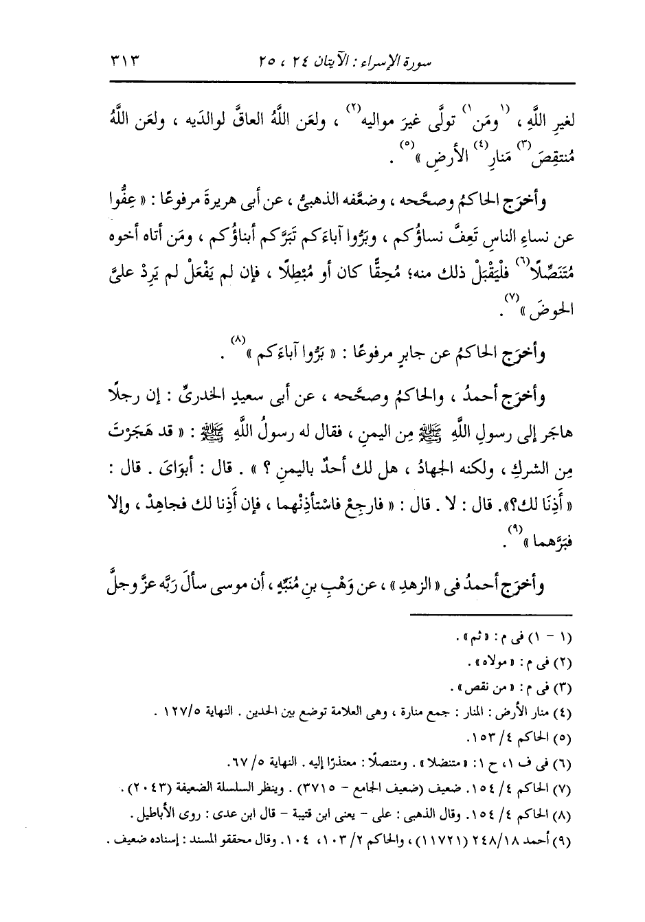 لغير الله ثم تولى غير مولاه ولعن الله العاق لوالديه ولعن الله من نقض منار الأرض.
