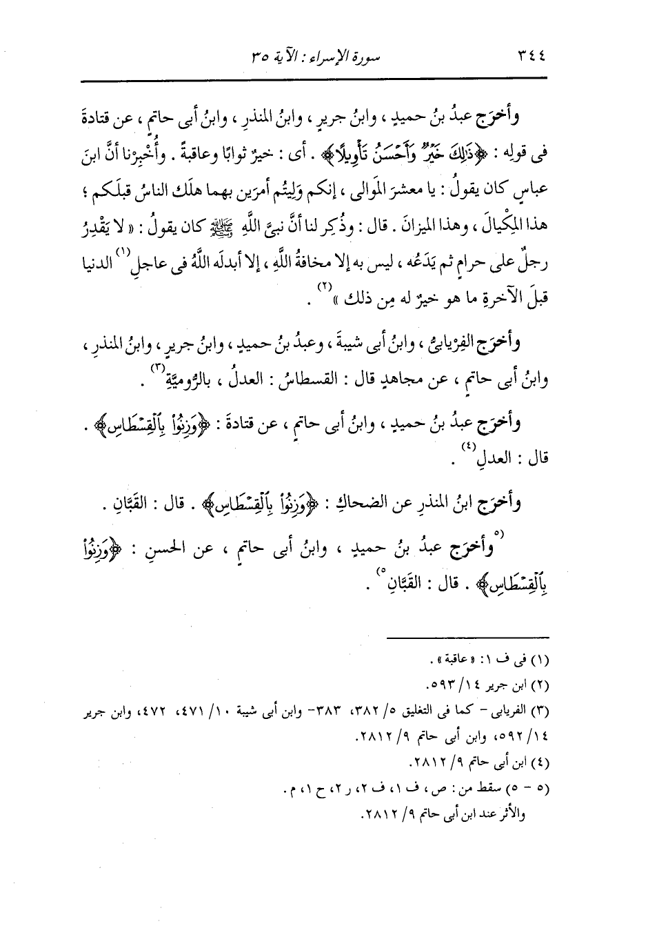 وأخرج عَبد بن حُمَيد ، وَابن أبي حاتم عن قتادة {وزنوا بالقسطاس} قال : العدل.