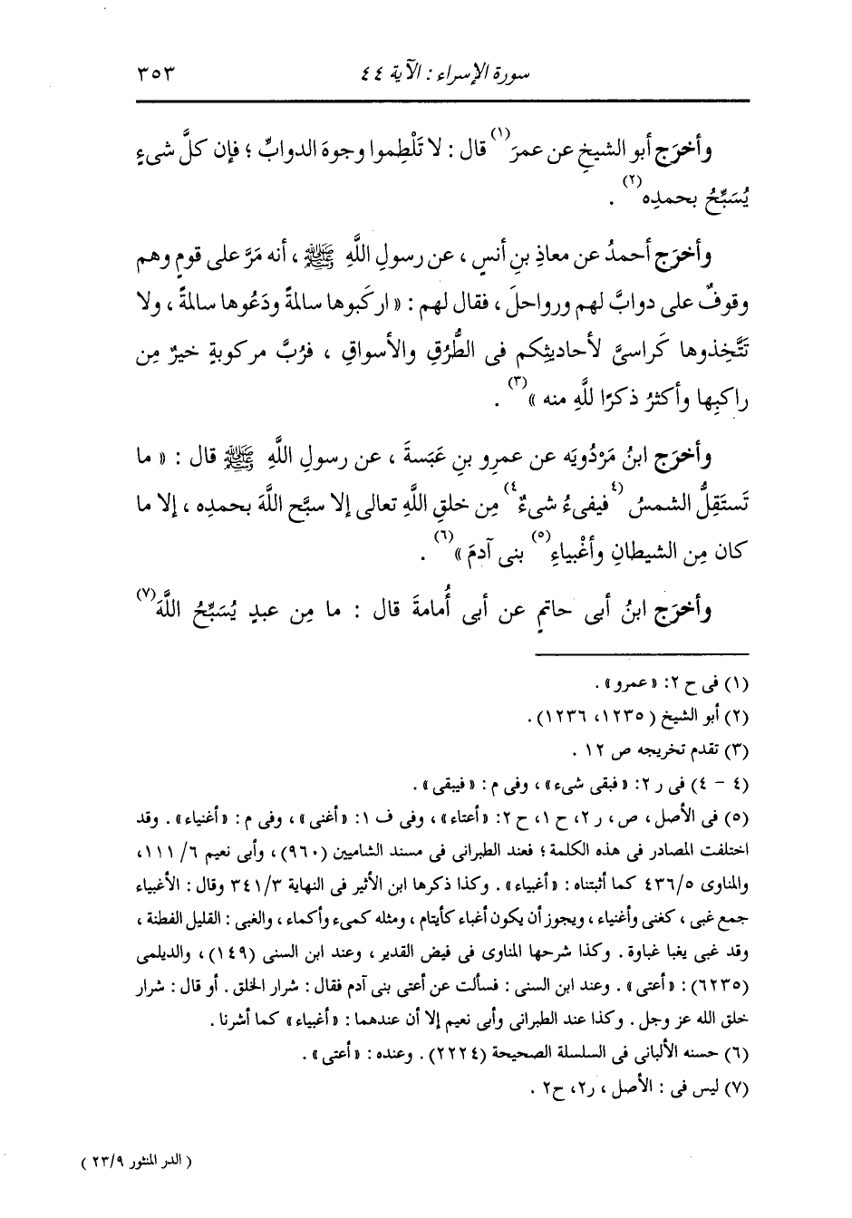 وأخرج ابن مردويه عن عمرو بن عبسة رضي الله عنه عن رسول الله صلى الله عليه وسلم قال : ما تستقل الشمس فيبقي من خلق الله تعالى إلا سبح الله بحمده إلا ما كان من الشيطان وأغنياء بني آدم.