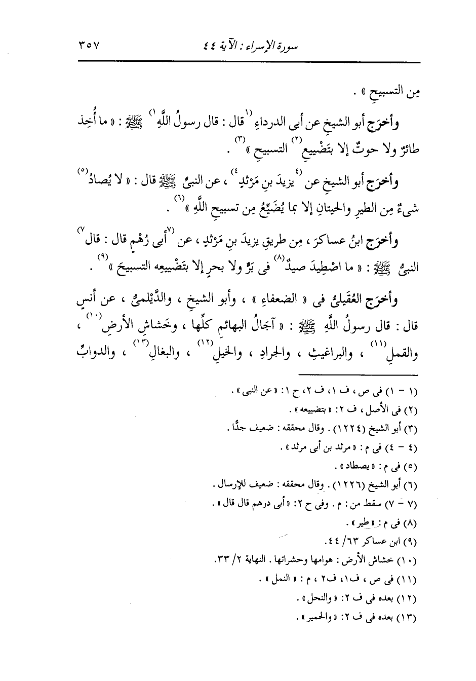 وأخرج أبو الشيخ عن مرثد بن أبي مرثد عن النَّبِيّ صلى الله عليه وسلم : لا يصطاد شيء من الطير والحيتان إلا بما يضيع من تسبيح الله.