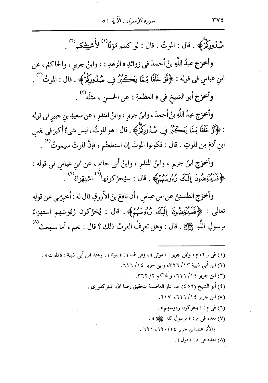 وأخرج ابن جرير ، وَابن المنذر ، وَابن أبي حاتم عن ابن عباس رضي الله عنهما في قوله : {فسينغضون إليك رؤوسهم} قال : يحركون رؤوسهم استهزاء برسول الله صلى الله عليه وسلم.