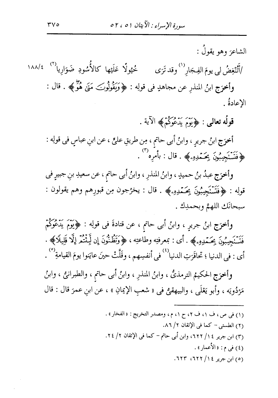 وأخرج عَبد بن حُمَيد ، وَابن المنذر ، وَابن أبي حاتم عن سعيد بن جبير رضي الله عنه في قوله : {فتستجيبون بحمده} قال : يخرجون من قبورهم وهم يقولون : سبحانك اللهم وبحمدك.