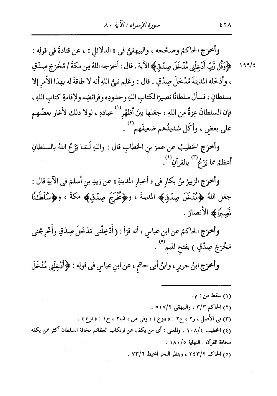وأخرج الزبير بن بكار في أخبار المدينة عن زيد بن أسلم رضي الله عنه في الآية قال : جعل الله {مدخل صدق} المدينة {مخرج صدق} مكة و{سلطانا نصيرا} الأنصار.