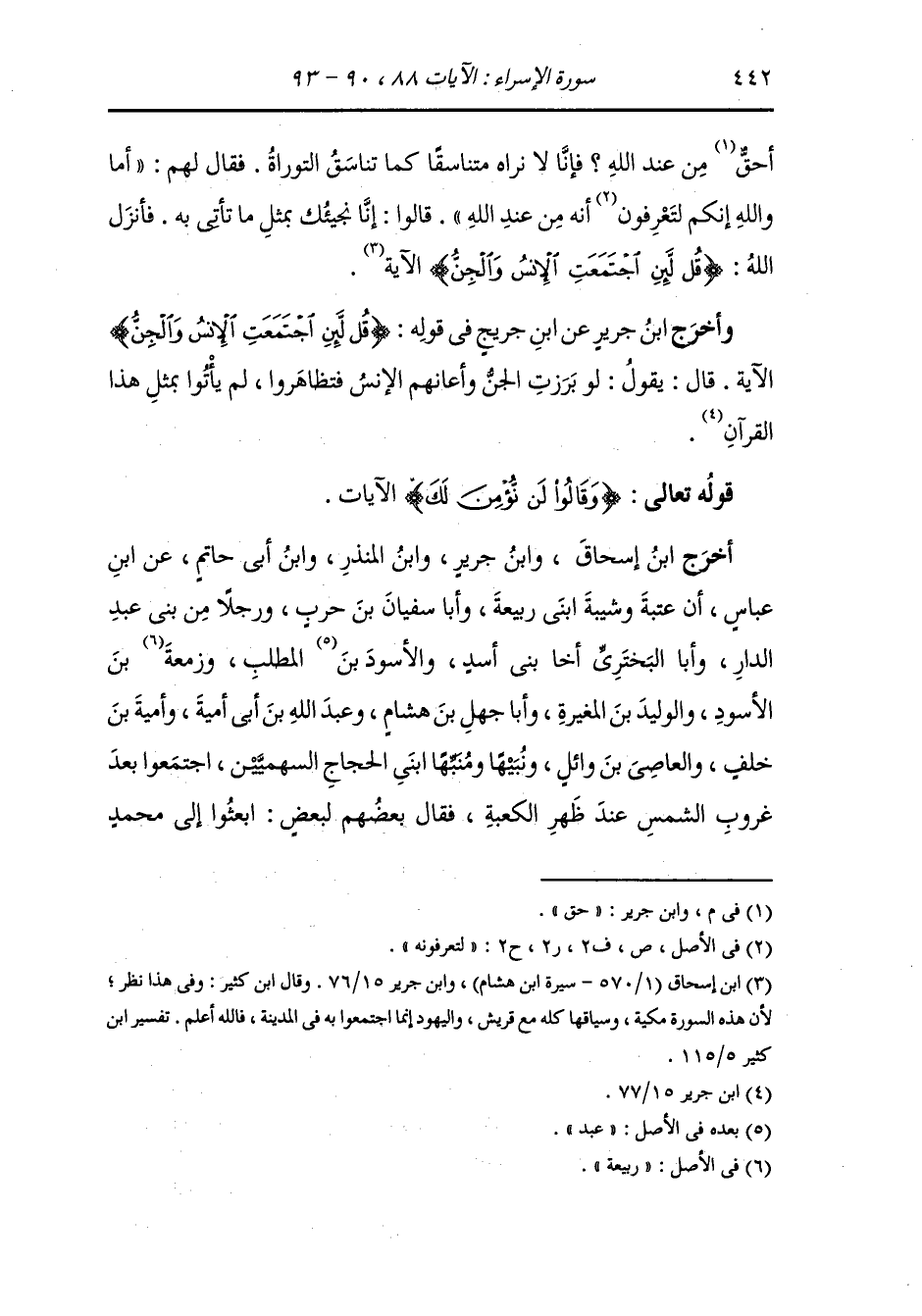 أَخْرَج ابن جرير ، وَابن إسحاق ، وَابن المنذر ، وَابن أبي حاتم عن ابن عباس رضي الله عنهما أن عتبة وشيبة ابني ربيعة وأبا سفيان بن حرب ورجلا من بني عبد الدار وأبا البختري - أخا بني أسد - والأسود بن المطلب وزمعة بن الأسود والوليد بن المغيرة وأبا جهل بن هشام وعبد الله بن أبي أمية وأمية بن خلف والعاص بن وائل ونبيها ومنبها ابني الحجاج السهميين اجتمعوا بعد غروب الشمس عند ظهر الكعبة فقال بعضهم لبعض : ابعثوا إلى محمد