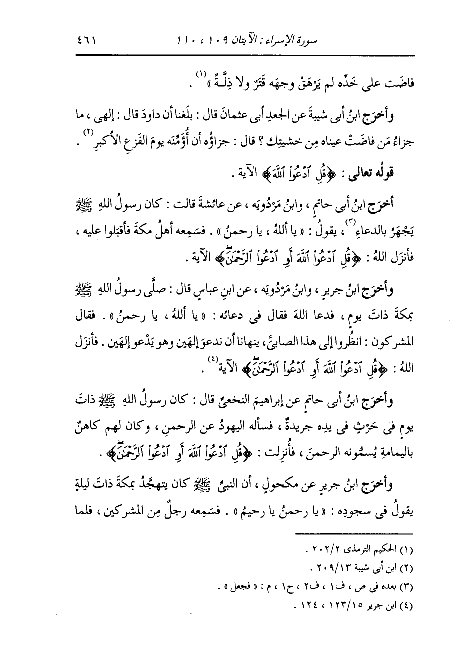 وأخرج ابن جرير عن مكحول : أن النَّبِيّ كان يتهجد بمكة ذات ليلة يقول في سجوده : يا رحمن ، يا رحيم ، فسمعه رجل من المشركين فلما