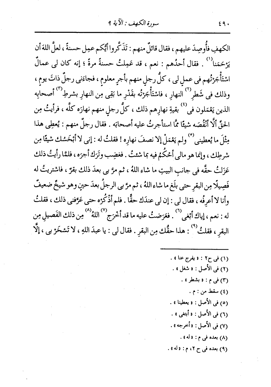 الكهف فأوصد عليهم فقال قائل منهم : تذكروا أيكم عمل حسنة لعل الله أن يرحمنا ، فقال أحدهم : نعم قد عملت حسنة مرة ، إنه كان لي عمال استأجرتهم في عمل لي كل رجل منهم بأجر معلوم ، فجاءني رجل ذات يوم وذلك في شطر النهار فاستأجرته بقدر ما بقي من النهار بشطر أصحابه الذين يعملون بقية نهارهم ذلك كل رجل منهم نهاره كله ، فرأيت من الحق أن لا أنقصه شيئا مما استأجرت عليه أصحابه ، فقال رجل منهم : يعطي هذا مثل ما يعطيني ولم يعمل إلا نصف نهاره.
