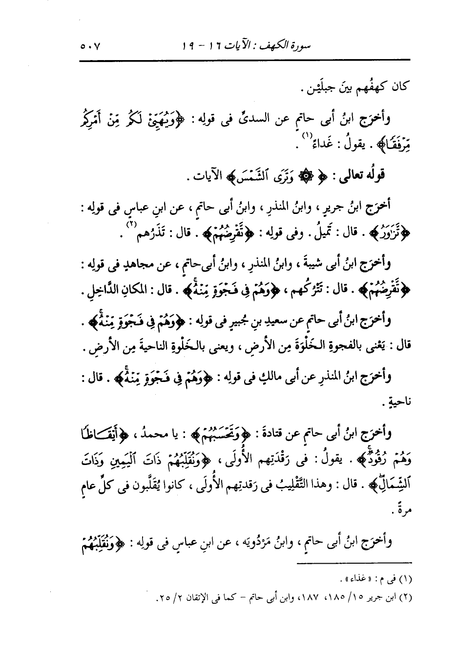 أَخْرَج ابن جرير ، وَابن المنذر ، وَابن أبي حاتم عن ابن عباس في قوله : {تزاور} قال : تميل ، وفي قوله : {تقرضهم} قال : تذرهم.