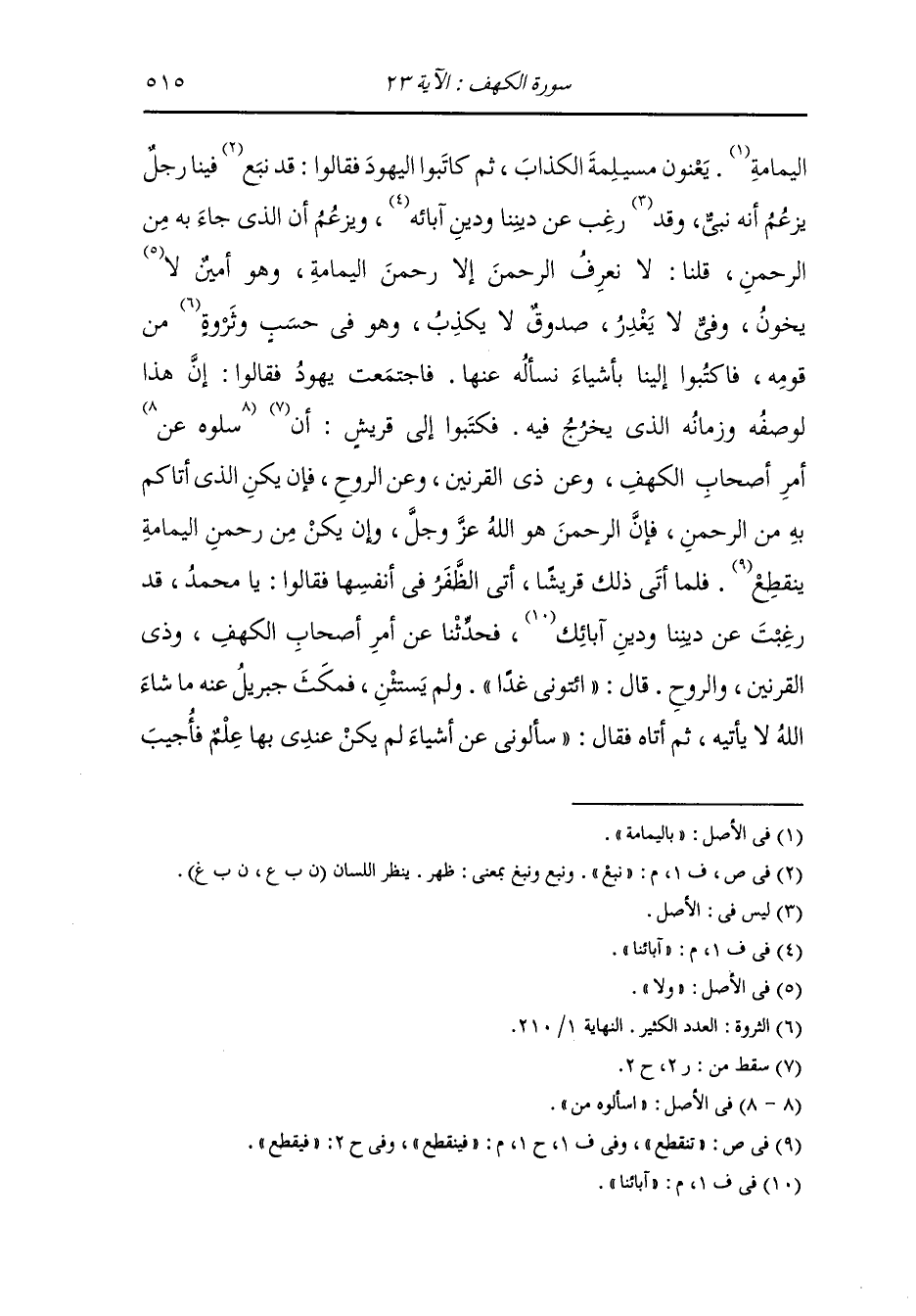 حسب وثروة من قومه فاكتبوا إلينا بأشياء نسأله عنها ، فاجتمعت يهود فقالوا : إن هذا لوصفه وزمانه الذي يخرج فيه ، فكتبوا إلى قريش : أن سلوه عن أمر أصحاب الكهف وعن ذي القرنين وعن الروح فإن يكن الذي أتاكم به من الرحمن فإن الرحمن هو الله عز وجل وإن يكن من رحمن اليمامة فينقطع ، فلما أتى ذلك قريشا أتى الظفر في أنفسها فقالوا : يا محمد قد رغبت عن ديننا ودين آبائنا ، فحدثنا عن أمر أصحاب الكهف وذي القرنين والروح ، قال : ائتوني غدا ، ولم يستثن فمكث جبريل عنه ما شاء الله لا يأتيه ثم أتاه فقال : سألوني عن أشياء لم يكن عندي بها علم فأجيب