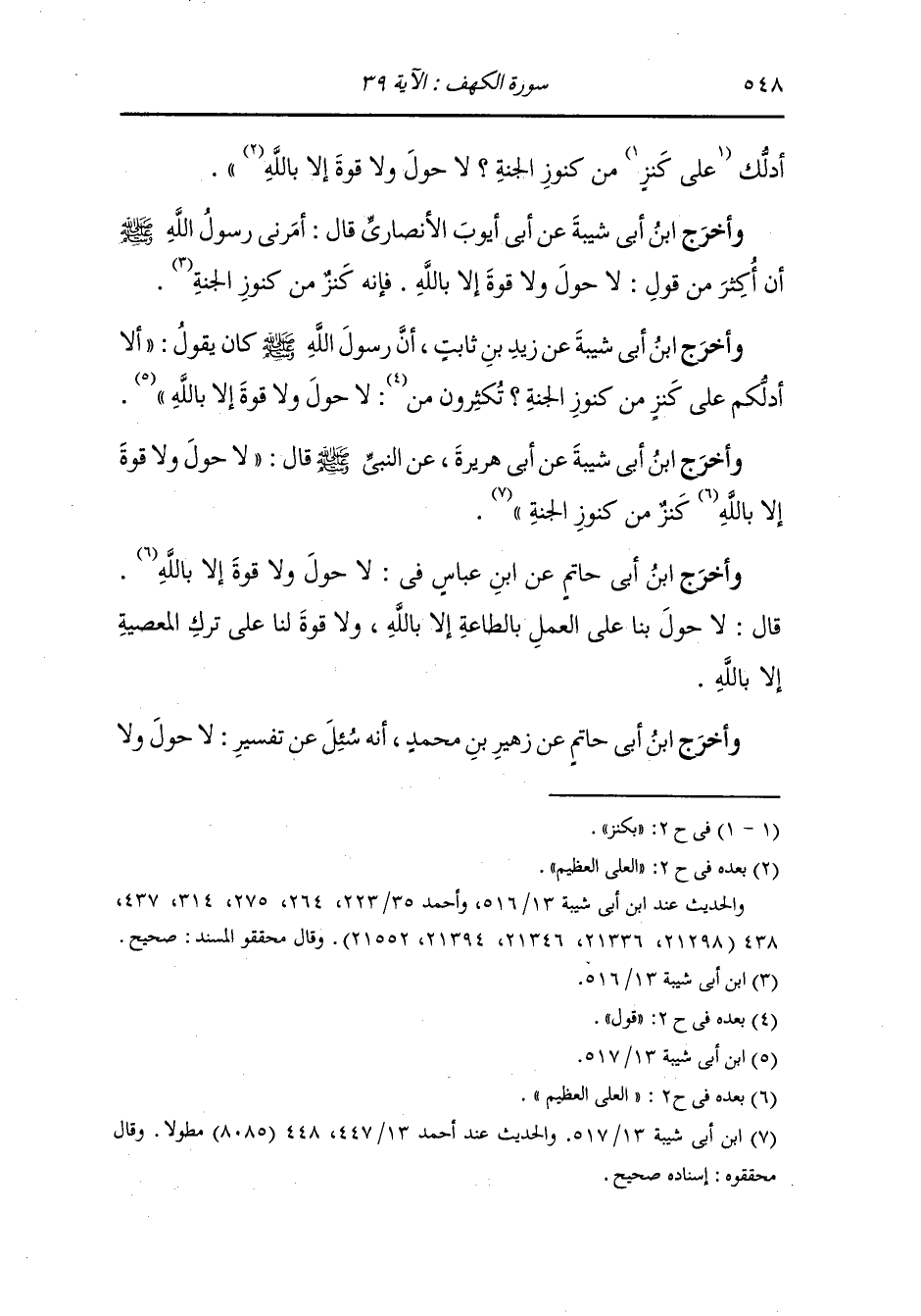 وأخرج ابن منده في الصحابة من طريق حماد بن سلمة عن سماك عن جرير قال : خرجت إلى فارس فقلت : {ما شاء الله لا قوة إلا بالله} فسمعني رجل فقال : ما هذا الكلام الذي لم أسمعه من أحد منذ سمعته من السماء فقلت : ما أنت وخبر السماء قال : إني كنت مع كسرى فأرسلني في بعض أموره فخرجت ثم قدمت فإذا شيطان خلفني في أهلي عي صورتي فبدأ لي فقال : شارطني على أن يكون لي يوم ولك يوم وإلا أهلكتك فرضيت بذلك فصار جليسي يحادثني وأحادثه فقال لي ذات يوم : إني مما يسترق السمع والليلة نوبتي قلت : فهل لك أن أختبئ معك قال : نعم ، فتهيأ ثم أتاني فقال : خذ بمعرفتي وإياك أن تتركها فتهلك فأخذت بمعرفته فعرج بي حتى لمست السماء فإذا قائل يقول : ما شاء الله لا حول ولا قوة إلا بالله فسقطوا على وجوههم وسقطت فرجعت إلى أهلي فإذا أنا به يدخل بعد أيام فجعلت أقول : ما شاء الله لا حول ولا قوة إلا