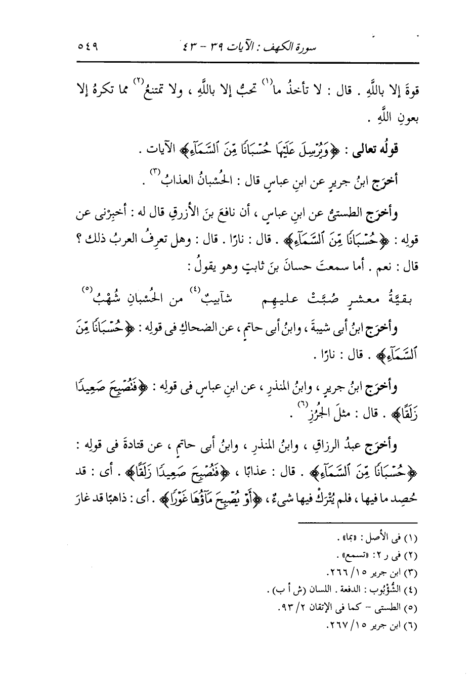 وأخرج أحمد في الزهد عن يحيى بن سليم الثقفي عن شيخ له قال : الكلمة التي تزجر بها الملائكة الشياطين حتى يسترقون السمع {ما شاء الله}.