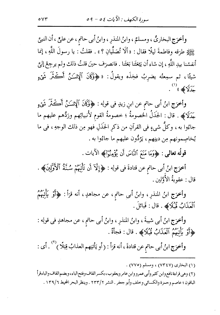 وأخرج ابن أبي حاتم عن عكرمة في قوله : {موبقا} قال : هو نهر في النار يسيل نارا على حافتيه حيات أمثال البغال الدهم فإذا ثارت إليهم لتأخذهم استغاثوا بالإقتحام في النار منها.