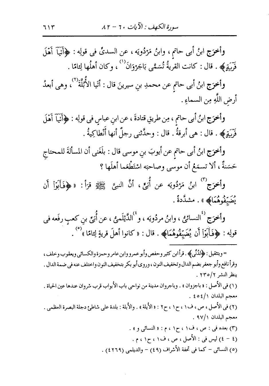 وأخرج أبو داود والترمذي وعبد الله بن أحمد والبزار ، وَابن جَرِير ، وَابن المنذر والطبراني ، وَابن مردويه عن أبي أن النَّبِيّ صلى الله عليه وسلم قرأ {من لدني عذرا} مثقلة.