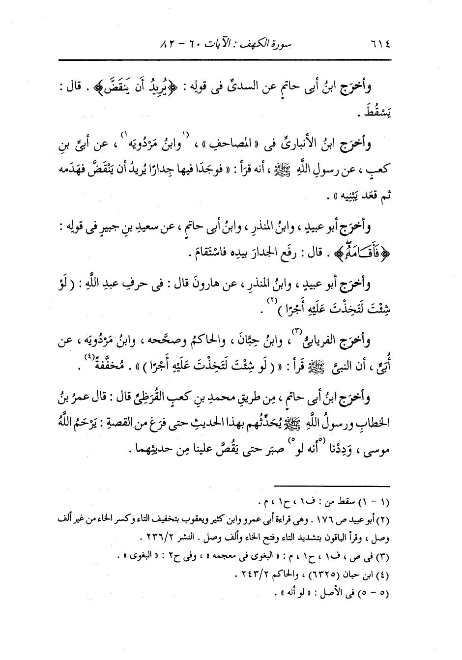 وَأخرَج النسائي ، وَابن مردويه عن أبي عن النَّبِيّ صلى الله عليه وسلم قرأ {فأبوا أن يضيفوهما} مشددة.