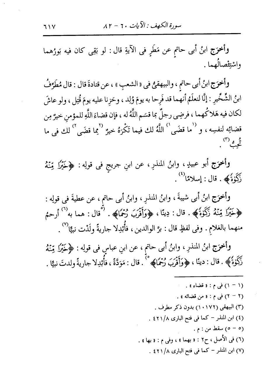 وأخرج ابن المنذر ، وَابن أبي حاتم عن سعيد بن جبير في قوله : {فخشينا أن يرهقهما طغيانا وكفرا} قال : خشينا أن يحملهما حبه على أن يتابعاه على دينه.