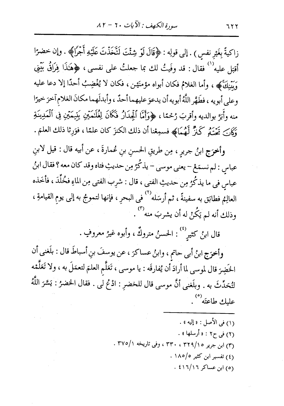 حملت هؤلاء كل رجل حملت في سفينتك فلك لكل رجل منا الضعف ، فحملهم فساروا حتى إذا شارفوا على الأرض - وقد أمر صاحب القرية : إن أبصرتم كل سفينة صالحة ليس فيها عيب فائتوني بها - وإن الخضر أمر أن يجعل فيها عيبا لكي لا يسخروها فخرقها فنبع فيها الماء وإن موسى امتلأ غضبا {قال أخرقتها لتغرق أهلها لقد جئت شيئا إمرا} وإن موسى عليه السلام شد عليه ثيابه وأراد أن يقذف الخضر في البحر فقال : أردت هلاكهم فتعلم أنك أول هالك : فجعل موسى كلما ازداد غضبا استقر البحر وكلما سكن كان البحر كالدهر وإن يوشع بن نون قال لموسى عليه السلام : ألا تذكر العهد والميثاق الذي جعلت على نفسك وإن الخضر أقبل عليه {قال ألم أقل إنك لن تستطيع معي صبرا} وإن موسى أدركه عند ذلك الحلم فقال : {لا تؤاخذني بما نسيت ولا ترهقني من أمري عسرا} فلما انتهوا إلى القرية قال خضر : ما خلصوا إليكم حتى خشوا الغرق وإن الخضر أقبل على صاحب السفينة فقال : إنما أردت الذي هو خير لك فحمدوا رأيه في آخر الحديث وأصلحها الله كما كانت ، ثم إنهم خرجوا حتى انتهوا إلى غلام شاب عهد إلى الخضر أن أقتله فقتله {قال أقتلت نفسا