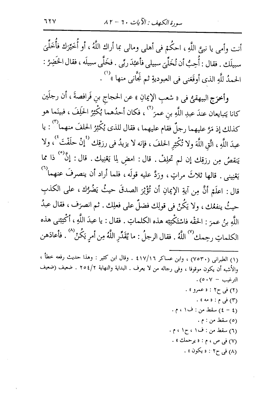 المشتري زمانا لا يستعمله في شيء ، فقال له : إنك إنما ابتعتني التماس خير عندي فأوصني أعمل بعمل ، قال : أكره أن أشق عليك إنك شيخ كبير ضعيف ، قال : ليس يشق علي قال : فقم فانقل هذه الحجارة ، وكان لا ينقلها دون ستة نفر في يوم فخرج الرجل لبعض حاجته ثم انصرف وقد نقل الحجارة في ساعة فقال : أحسنت وأجملت وأطقت ما لم أرك تطيقه ثم عرض للرجل سفرة فقال : إني احتسبتك أمينا فاخلفني في أهلي خلافة حسنة ، قال : فأوصني بعمل ، قال : إني أكره أن أشق عليك ، قال : ليس يشق علي قال : فاضرب من اللبن لنبني حتى أقدم عليك فمر الرجل لسفره فرجع وقد شيد بناؤه فقال : أسألك بوجه الله ما سبيلك وما أمرك فقال : سألتني بوجه الله ووجه الله أوقعني في العبودية أنا الخضر الذي سمعت به ، سألني مسكين صدقة ولم يكن عندي شيء أعطيه فسألني بوجه الله فأمكنته من نفسي فباعني ، فأخبرك