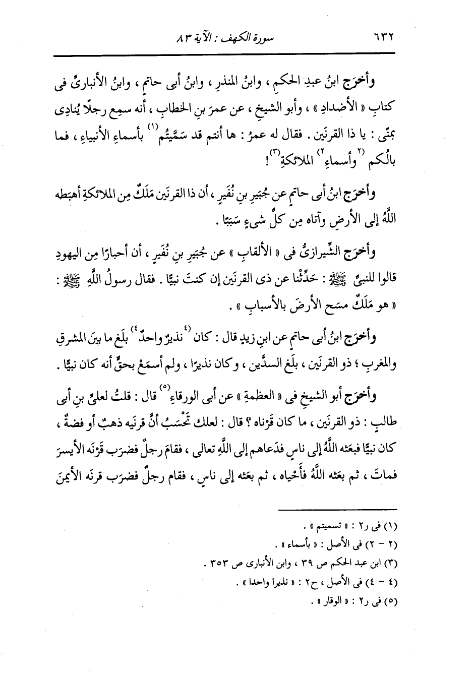 وأخرج ابن أبي حاتم عن الأحوص بن حكيم عن أبيه أن النَّبِيّ صلى الله عليه وسلم : سئل عن ذي القرنين فقال : هو ملك مسح الأرض بالإحسان.