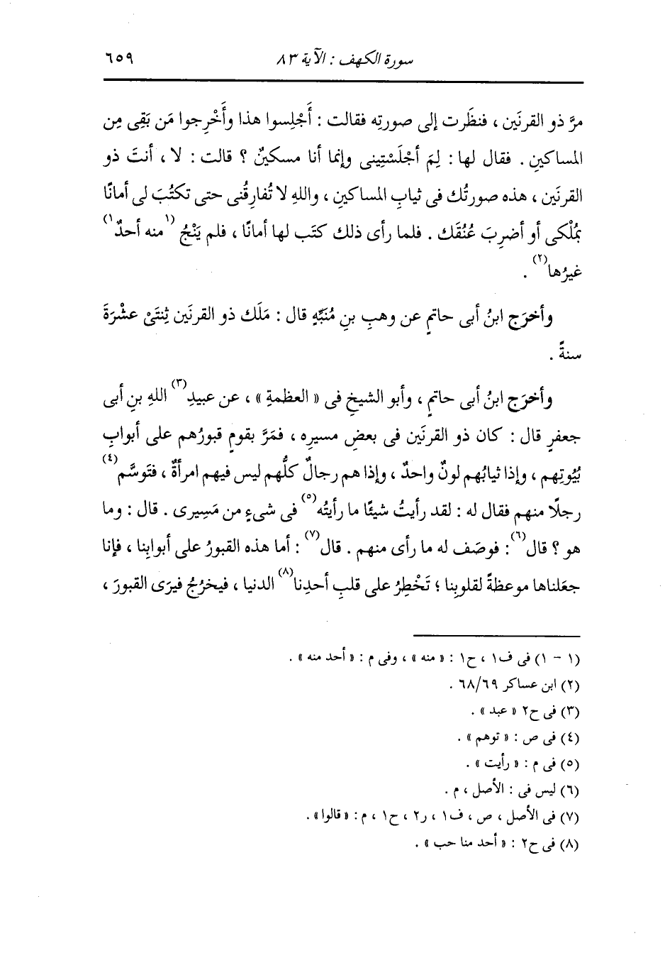وأخرج ابن ابي حاتم ، وَابن عساكر عن مجاهد رضي الله عنه قال : إن ذا القرنين ملك الأرض كلها إلا بلقيس صاحبة مأرب فإذا ذا القرنين كلن يلبس ثياب المساكين ثم يدخل المدائن فينظر من عورتها قبل أن يقتل أهلها فأخبرت بذلك بلقيس فبعثت رسولا ينظر إليه فيصور لها صورته في ملكه حين يقعد وصورته في ثياب المساكين ، ثم جعلت كل يوم تطعم المساكين وتجمعهم فجاءها رسولها في صورته فجعلت إحدى صورتيه تليها والأخرى على باب الاسطوانة فكانت تطعم المساكين كل يوم فإذا فرغوا عرضتهم واحدا واحدا فيخرجون حتى جاء ذو القرنين في ثياب المساكين فدخل مدينتها ثم جلس مع المساكين إلى طعامها فقربت إليهم الطعام فلما فرغوا أخرجتهم واحدا واحدا وهي تنظر إلى صورته في ثياب المساكين حتى