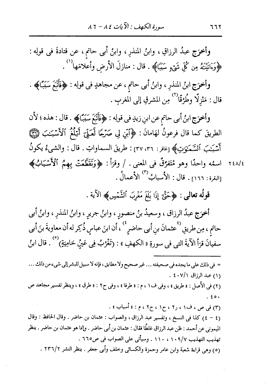 وأخرج ابن جرير ، وَابن أبي حاتم عن ابن عباس رضي الله عنهما في قوله : {فأتبع سببا} قال : المنزل.