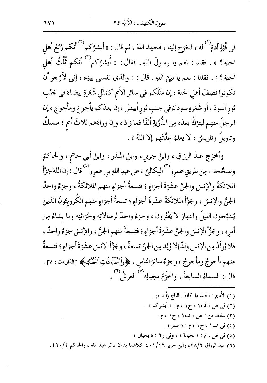 وأخرج ابن أبي حاتم عن عبد الله بن مسعود قال : أتينا نبي الله صلى الله عليه وسلم يوما وهو