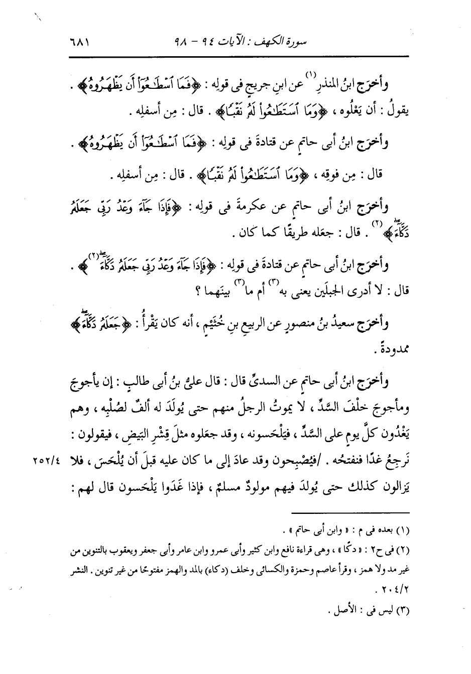 وأخرج عبد الرزاق ، وَابن أبي حاتم عن قتادة في قوله : {فما اسطاعوا أن يظهروه} قال : ما استطاعوا أن يرتقوه.