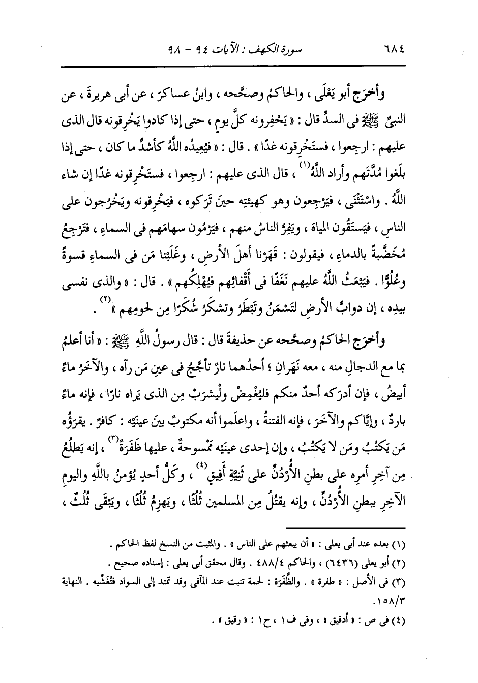 وأخرج ابن جرير والحاكم وصححه عن عبد الله بن عمرو قال : يأجوج ومأجوج يمر أولهم بنهر مثل دجلة ويمر آخرهم فيقول : قد كان في هذا النهر مرة