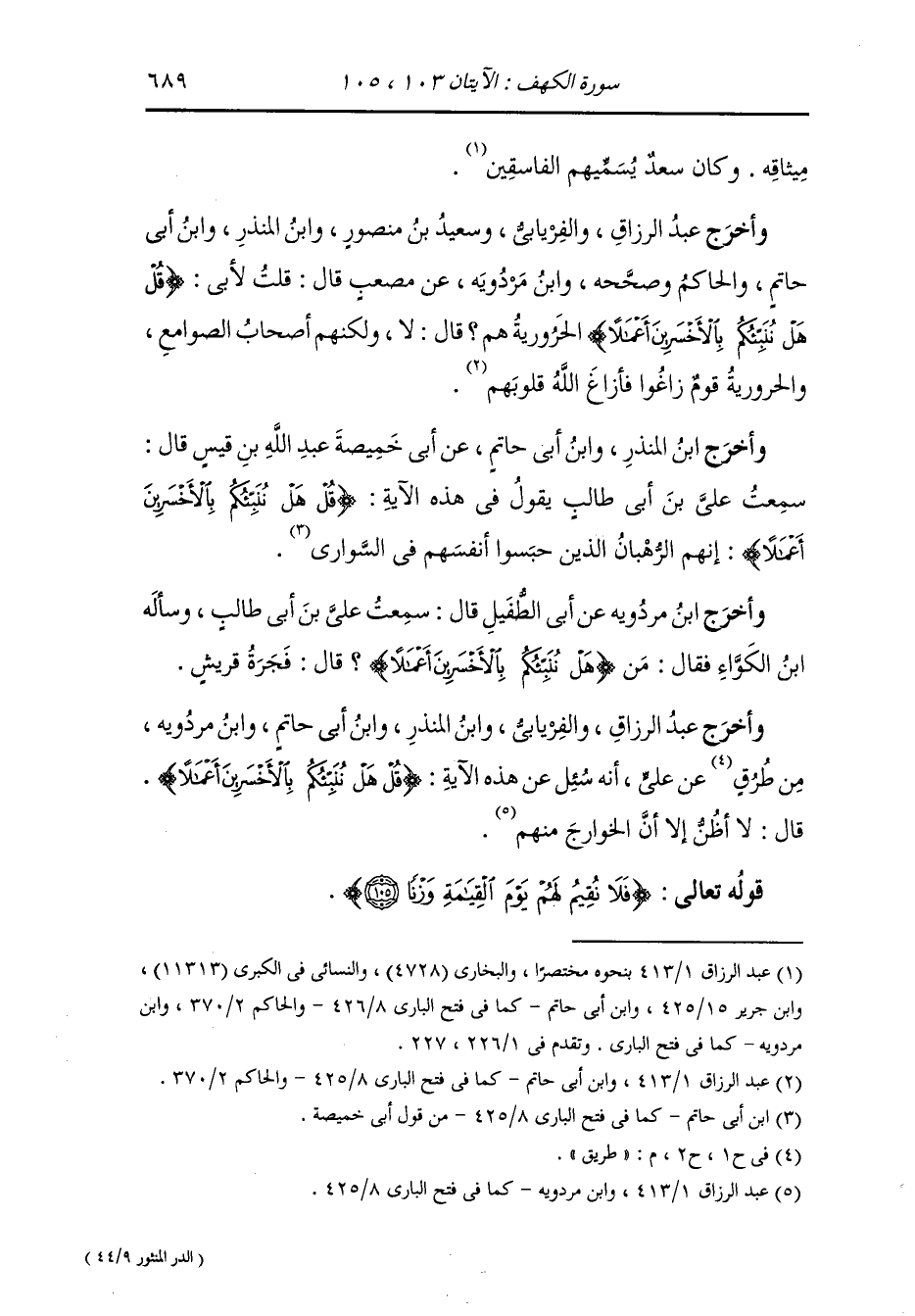 أخرج عبد الرزاق والبخاري والنسائي ، وَابن جَرِير ، وَابن المنذر ، وَابن أبي حاتم والحاكم ، وَابن مردويه من طريق مصعب بن سعد قال : سألت أبي {قل هل ننبئكم بالأخسرين أعمالا} أهم الحرورية قال : لا هم اليهود والنصارى ، أما اليهود فكذبوا محمدا صلى الله عليه وسلم.