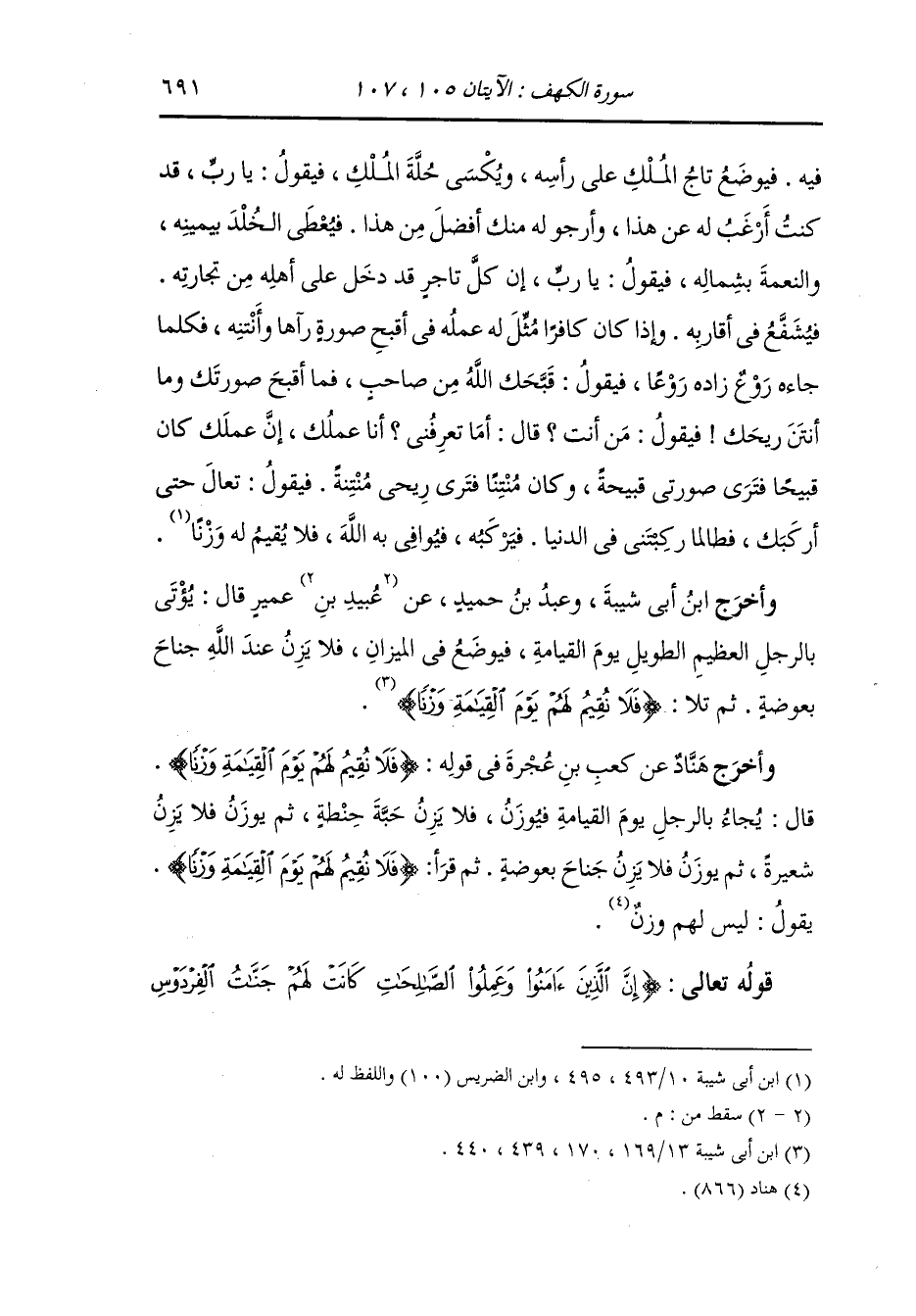 وأخرج البخاري ومسلم ، وَابن المنذر ، وَابن أبي حاتم عن أبي هريرة عن رسول الله صلى الله عليه وسلم قال : إنه ليأتي الرجل العظيم السمين يوم القيامة لا يزن عند الله جناح بعوضة ، وقال : اقرأوا إن شئتم {فلا نقيم لهم يوم القيامة وزنا}.