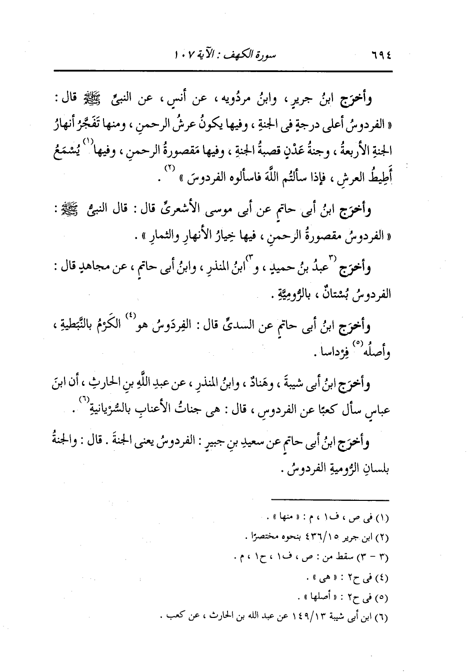 وأخرج ابن جرير ، وَابن أبي حاتم والطبراني عن سمرة بن جندب قال : قال رسول الله صلى الله عليه وسلم : جنة الفردوس هي ربوة الجنة العليا التي هي أوسطها وأحسنها.
