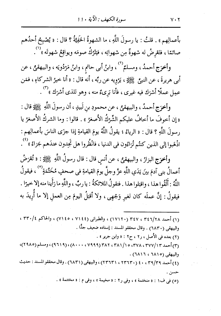 وأخرج أحمد والحكيم الترمذي والحاكم وصححه والبيهقي عن أبي سعيد قال : قال رسول الله صلى الله عليه وسلم : الشرك الخفي أن يقوم الرجل يصلي لمكان رجل.