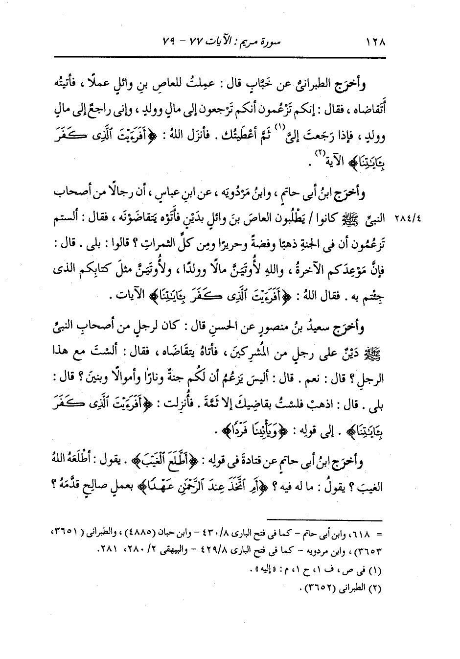 وأخرج الحكيم الترمذي عن أبي بكر الصديق قال : قال رسول الله صلى الله عليه وسلم : من قال في دبر كل صلاة - بعدما سلم - هؤلاء الكلمات : كتبه ملك في رق فختم بخاتم ثم دفعها إلي يوم القيامة فإذا بعث الله العبد من قبره جاءه الملك ومعه الكتاب ينادي : أين أهل العهود حتى تدفع إليهم والكلمات أن تقول : اللهم فاطر السموات والأرض عالم الغيب والشهادة الرحمن الرحيم - إني أعهد إليك في هذه الحياة الدنيا بأنك أنت الله الذي لا إله إلا أنت وحدك لا شريك لك وأن محمدا عبدك ورسولك فلا تكلني إلى نفسي فإنك إن تكلني إلى نفسي تقربني من الشر وتباعدني من الخير وإني لا أثق إلا برحمتك فاجعل رحمتك لي عهدا عندك تؤديه إلي يوم القيامة : إنك لا تخلف الميعاد وعن طاووس : أنه أمر بهذه الكلمات فكتبت في كفنه.