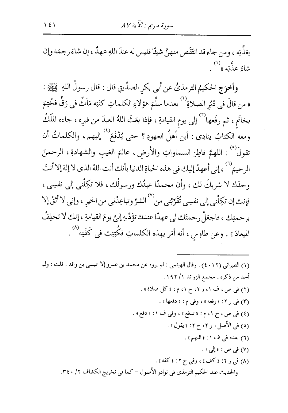 وأخرج البزار بسند حسن ، عَن عَلِي ، قال : كان النَّبِيّ صلى الله عليه وسلم يراوح بين قدميه يقوم على كل رجل حتى نزلت {ما أنزلنا عليك القرآن لتشقى}.