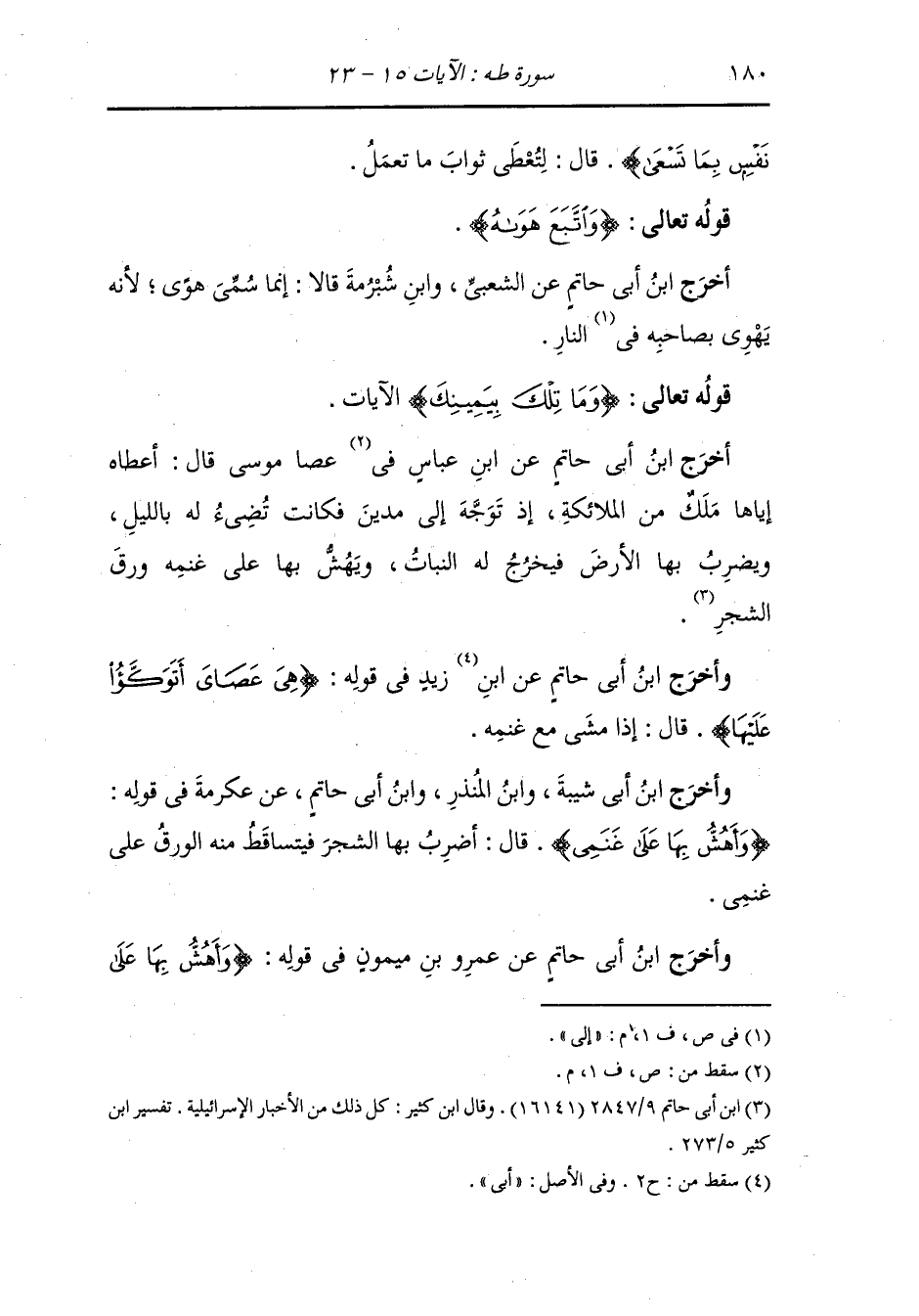 وقهارمتها : لا يبقى منكم اليوم واحد إلا استقبل ابني بهدية وكرامة أرى ذلك فيه وأنا باعثة أمينا يحضر ما صنع كل إنسان منكم فلم تزل الهدايا والنحل والكرامة تستقبله من حين خرج من بيت أمه إلى أن دخل عليها فلما دخل عليها أكرمته ونحلته وفرحت به وأعجبها ونحلت أمه لحسن أثرها عليه ثم قالت لأنطلقن به إلى فرعون فلينحله وليكرمنه ، فلما دخلت به عليه وجعلته في حجره فتناول موسى لحية فرعون فمدها إلى الأرض فقالت له الغواة - من أعداء الله - : ألا ترى إلى ما وعد الله إبراهيم إنه يرثك ويصرعك ويعلوك ، فأرسل إلى الذباحين ليذبحوه ، وذلك من الفتون يا ابن جبير بعد كل بلاء ابتلي به وأريد به فتونا ، فجاءت امرأة فرعون تسعى إلى فرعون فقالت : ما بدا لك في هذا الصبي الذي وهبته لي قال : ألا ترينه يزعم أنه سيصرعني ويعلوني قالت له : اجعل بيني وبينك أمرا تعرف فيه الحق ائت بجمرتين ولؤلؤتين فقربهن إليه فإن بطش بالؤلؤتين واجتنب الجمرتين علمت أن يعقل وإن هو تناول الجمرتين ولم يرد اللؤلؤتين فاعلم أن أحد لا يؤثر الجمرتين على اللؤلؤتين وهو يعقل ، فلما قرب إليه الجمرتين واللؤلؤتين أخذ الجمرتين