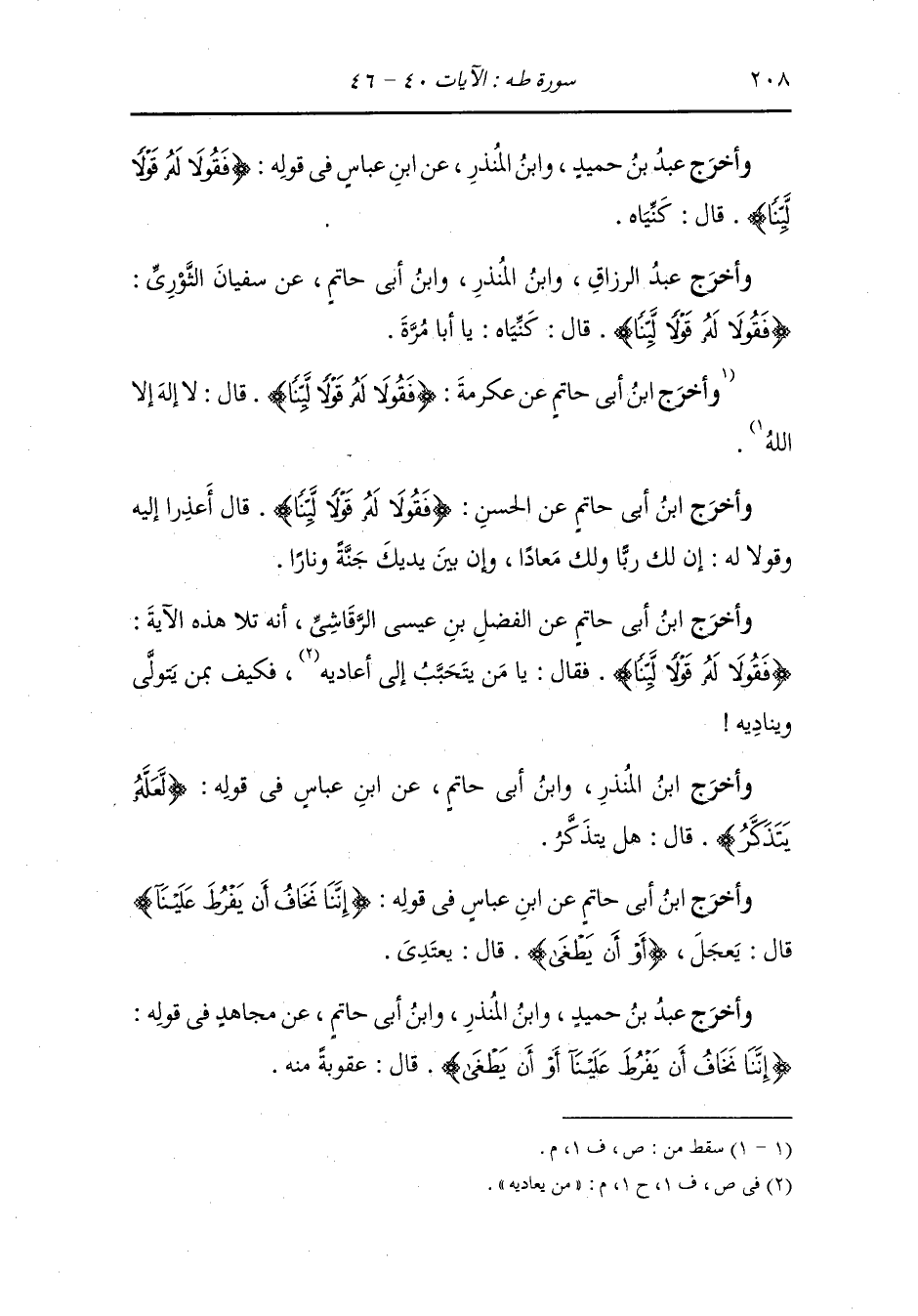 عبد الله قال : إن الله ليدخل خلقا الجنة فيعطيهم حتى يملوا وفوقهم ناس في {الدرجات العلى} فإذا نظروا إليهم عرفوهم فيقول : يا ربنا إخواننا كنا معهم فبم فضلتهم علينا فيقال : هيهات ، إنهم كانوا يجوعون حين تشبعون ويظمؤون حين تروون ويقومون حين تنامون ويستحصون حين تختصون.