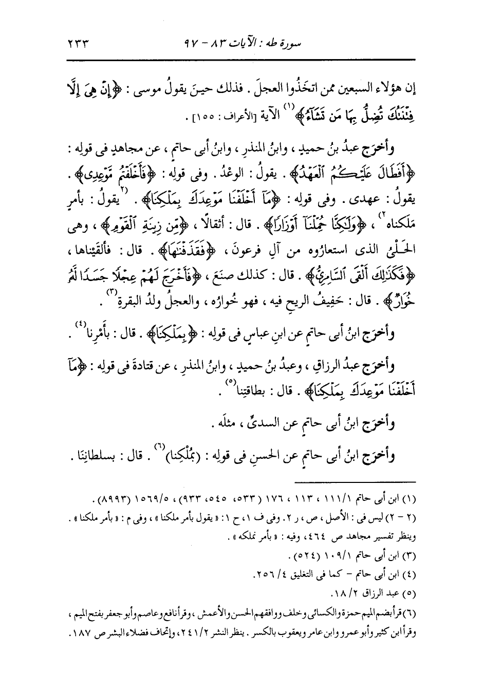 وأخرج ابن جرير ، وَابن منده عن ابن عباس رضي الله عنهما في قوله : {ولم نجد له عزما} قال : حفظا.