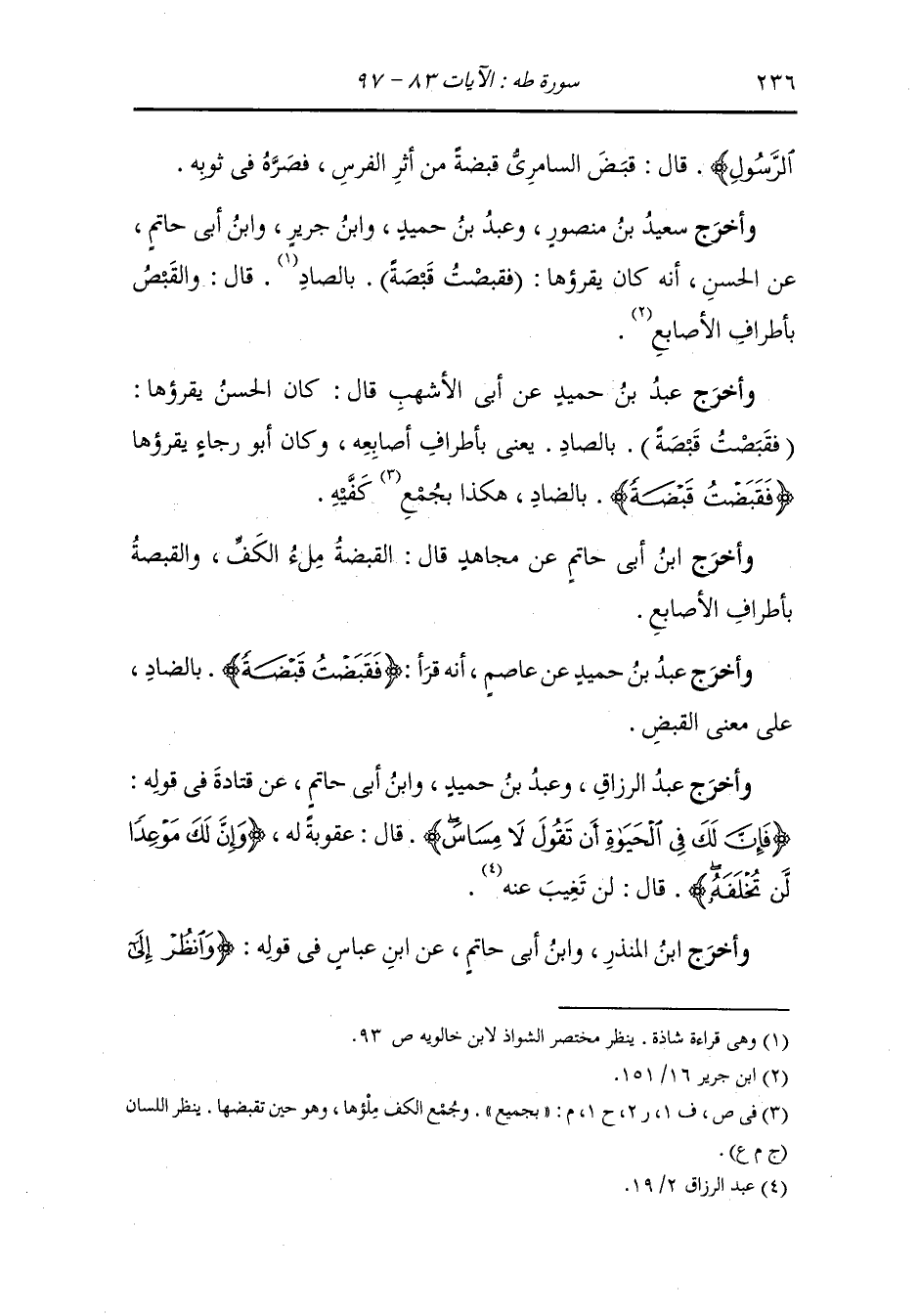 وأخرج الطستي في مسائله عن ابن عباس : أن نافع بن الأزرق سأله عن قوله : {وأنك لا تظمأ فيها ولا تضحى} قال : لا تعرق فيها من شدة الشمس ، قال : وهل تعرف العرب ذلك قال : نعم ، أما سمعت الشاعر يقول : رأت رجلا أما إذا الشمس عارضت * فيضحى وأما بالعشي فيخضر.