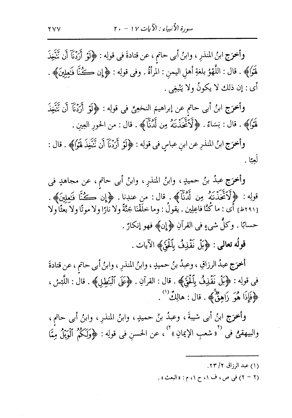 أَخْرَج ابن المنذر عن جريج قال : لما نعى جبريل للنبي صلى الله عليه وسلم نفسه قال : يا رب فمن لأمتي فنزلت {وما جعلنا لبشر من قبلك الخلد} الآية.
