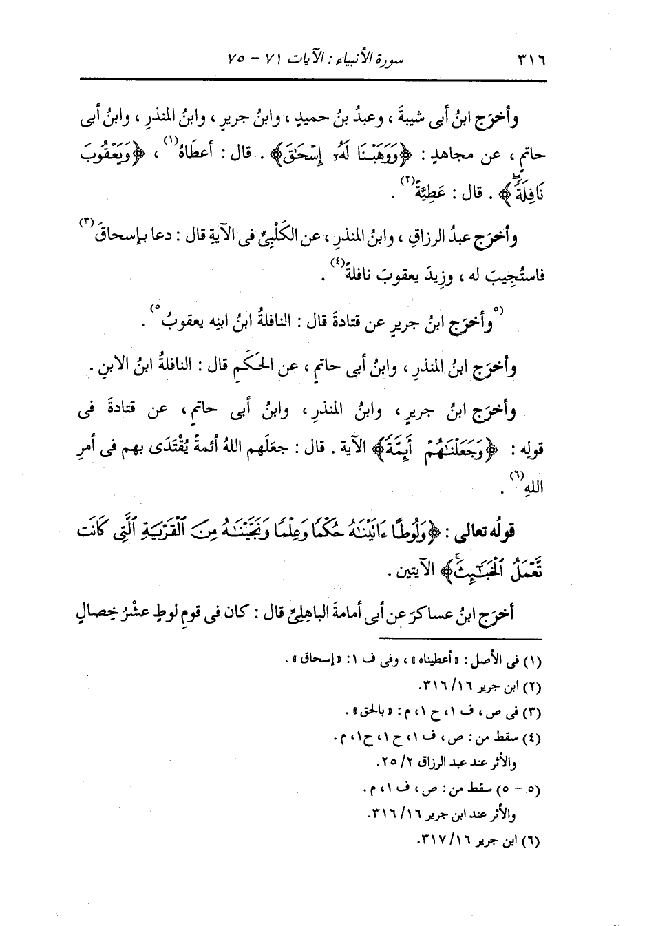 وأخرج ابن أبي حاتم عن عبد الله بن عبيد بن عمير قال : كان سليمان يأمر الريح فتجتمع كالطود العظيم ثم يأمر بفراشه فيوضع على أعلى مكان منها ثم يدعو بفرس من ذوات الأجنحة فترتفع حتى تصعد على فراشه ثم يأمر الريح فترتفع به كل شرف دون السماء فهو يطأطئ رأسه ما يلتفت يمينا ولا شمالا تعظيما لله وشكرا لما يعلم من صغر ما هو فيه في ملك الله يضعه الريح حيث يشاء أن يضعه.