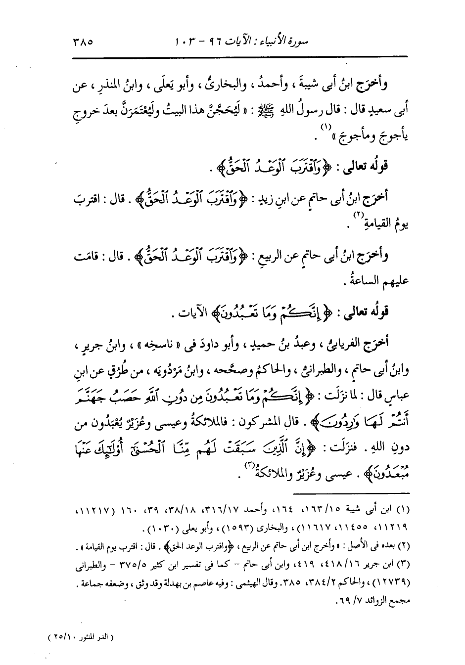 وأخرج هناد ، وعَبد بن حُمَيد ، وَابن جريرعن سعيد بن جبير في قوله : {ولقد كتبنا في الزبور} قال : الزبور التوراة والإنجيل والقرآن {من بعد الذكر} قال : الذكر الذي في السماء.