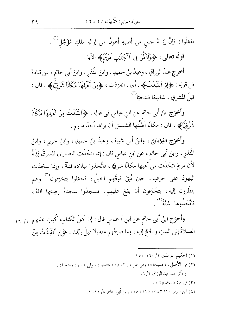 أخرج عبد الرزاق ، وعَبد بن حُمَيد ، وَابن المنذر ، وَابن أبي حاتم عن قتادة في قوله : {إذ انتبذت} أي انفردت {من أهلها مكانا شرقيا} قال : قبل المشرق شاسعا متنحيا.
