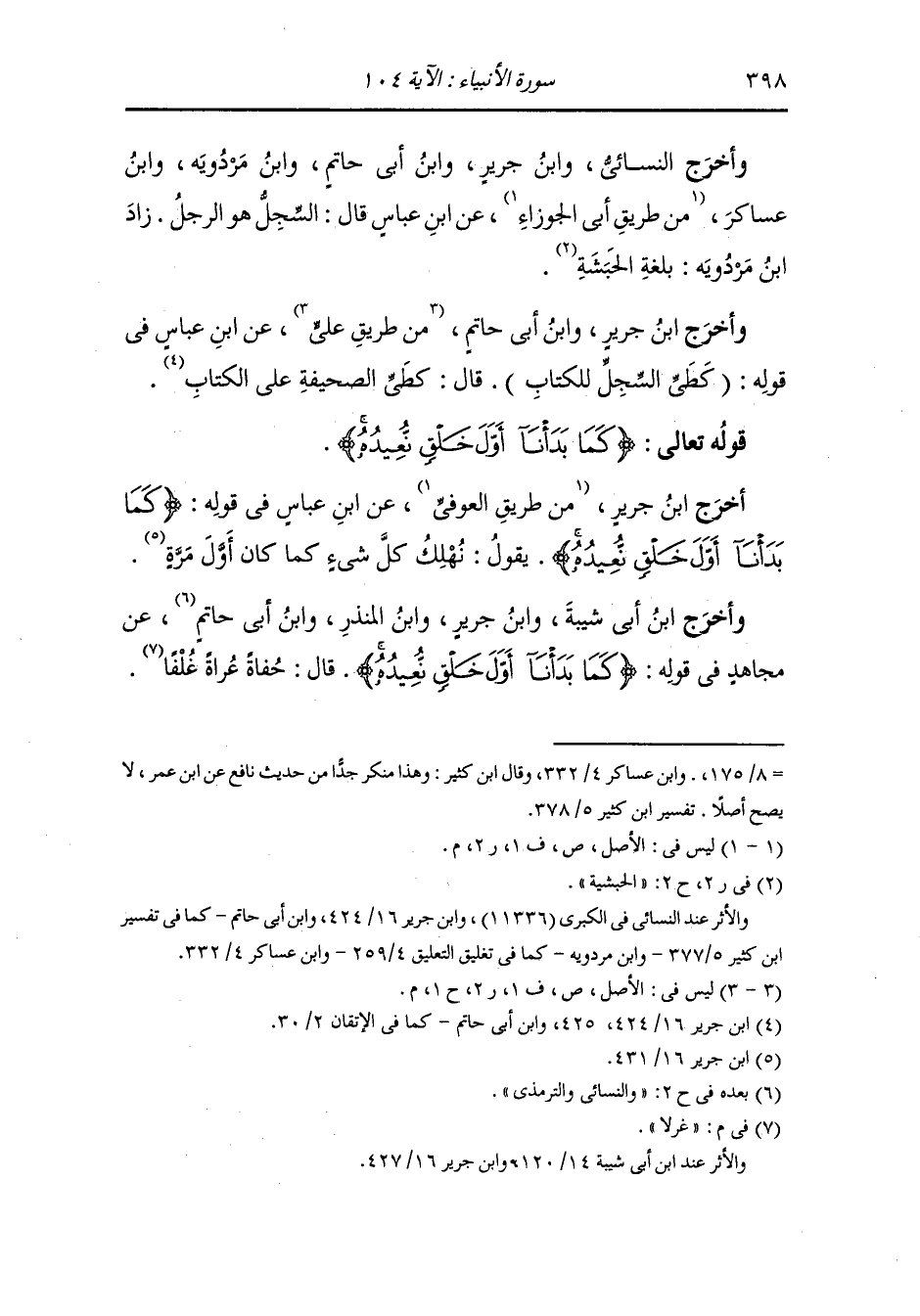 وأخرج عَبد بن حُمَيد وعبد الرزاق ، وَابن جَرِير ، وَابن المنذر ، وَابن أبي حاتم ، وَابن حبان والحاكم وصححه ، وَابن مردويه عن أنس قال : نزلت {يا أيها الناس اتقوا ربكم إن زلزلة الساعة شيء عظيم} إلى قوله (ولكن عذاب الله شديد) على النَّبِيّ صلى الله عليه وسلم وهو في مسير له فرفع بها صوته حتى ثاب إليه أصحابه فقال : أتدرون أي يوم هذا هذا يوم يقول الله لآدم : يا آدم قم فابعث بعث النار من كل ألف تسعمائة وتسعة وتسعين فكبر ذلك على المسلمين فقال النَّبِيّ صلى الله عليه وسلم سددوا وقاربوا وابشروا فوالذي نفس محمد بيده ما أنتم في النار إلا كالشامة في جنب البعير أو كالرقمة في