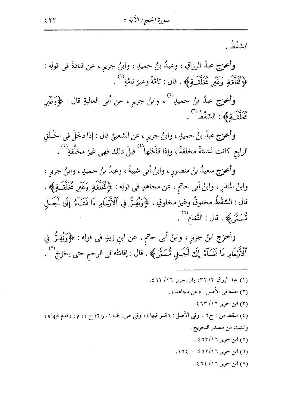 وأخرج عَبد بن حُمَيد عن لاحق بن حميد قال : نزلت هذه الآية يوم بدر {هذان خصمان اختصموا في ربهم فالذين كفروا قطعت لهم ثياب من نار} في عتبة ابن ربيعة وشيبة بن ربيعة والوليد بن عتبة ، ونزلت {إن الله يدخل الذين آمنوا وعملوا الصالحات} إلى قوله (وهدوا إلى صراط